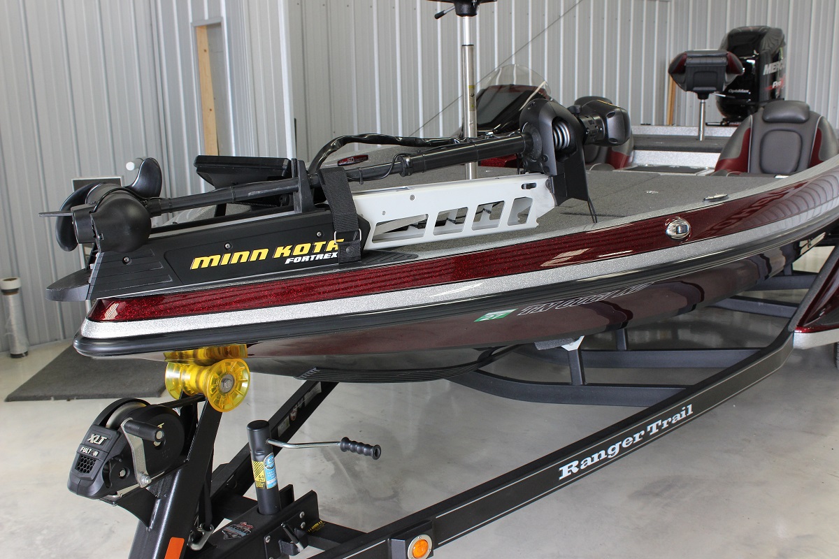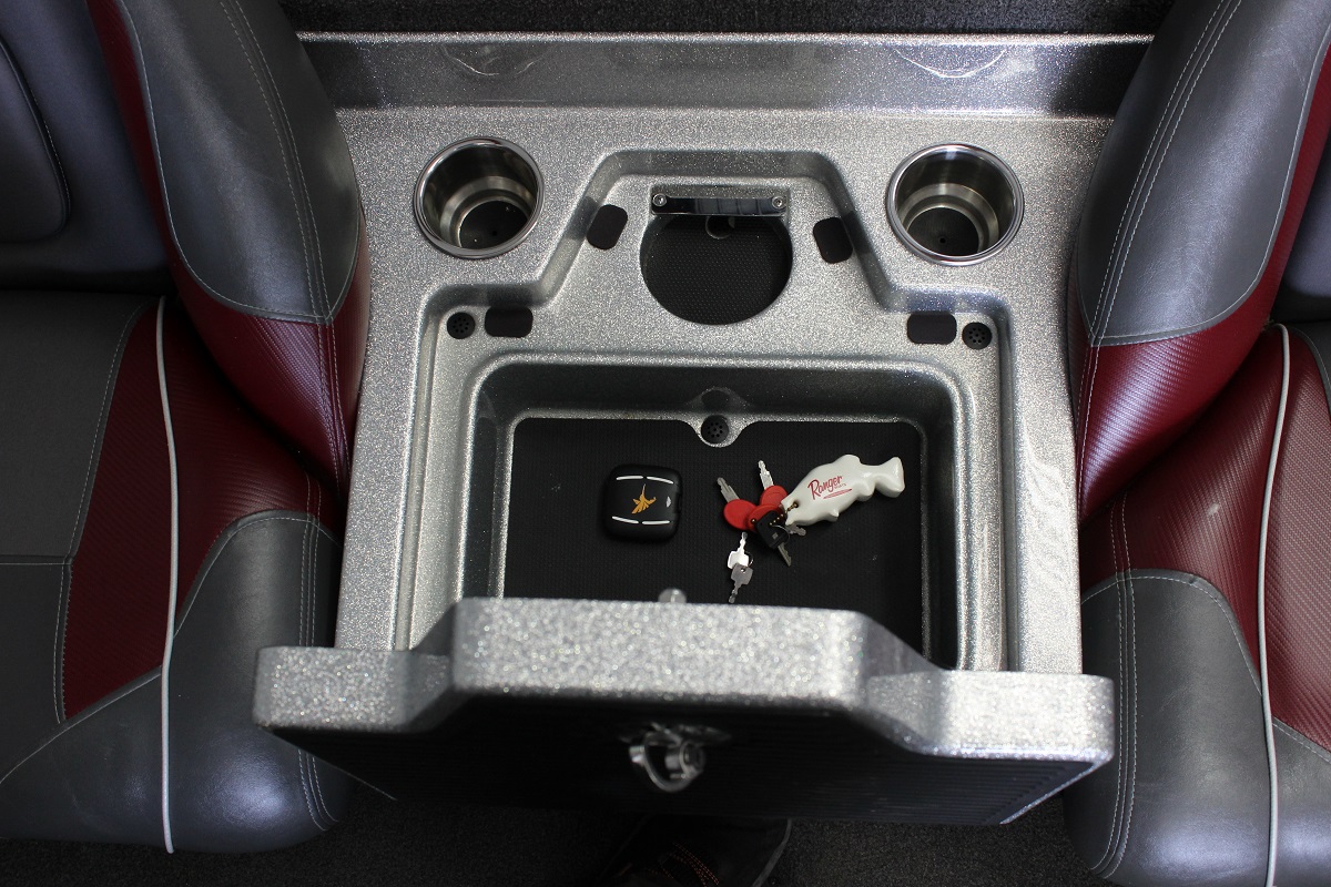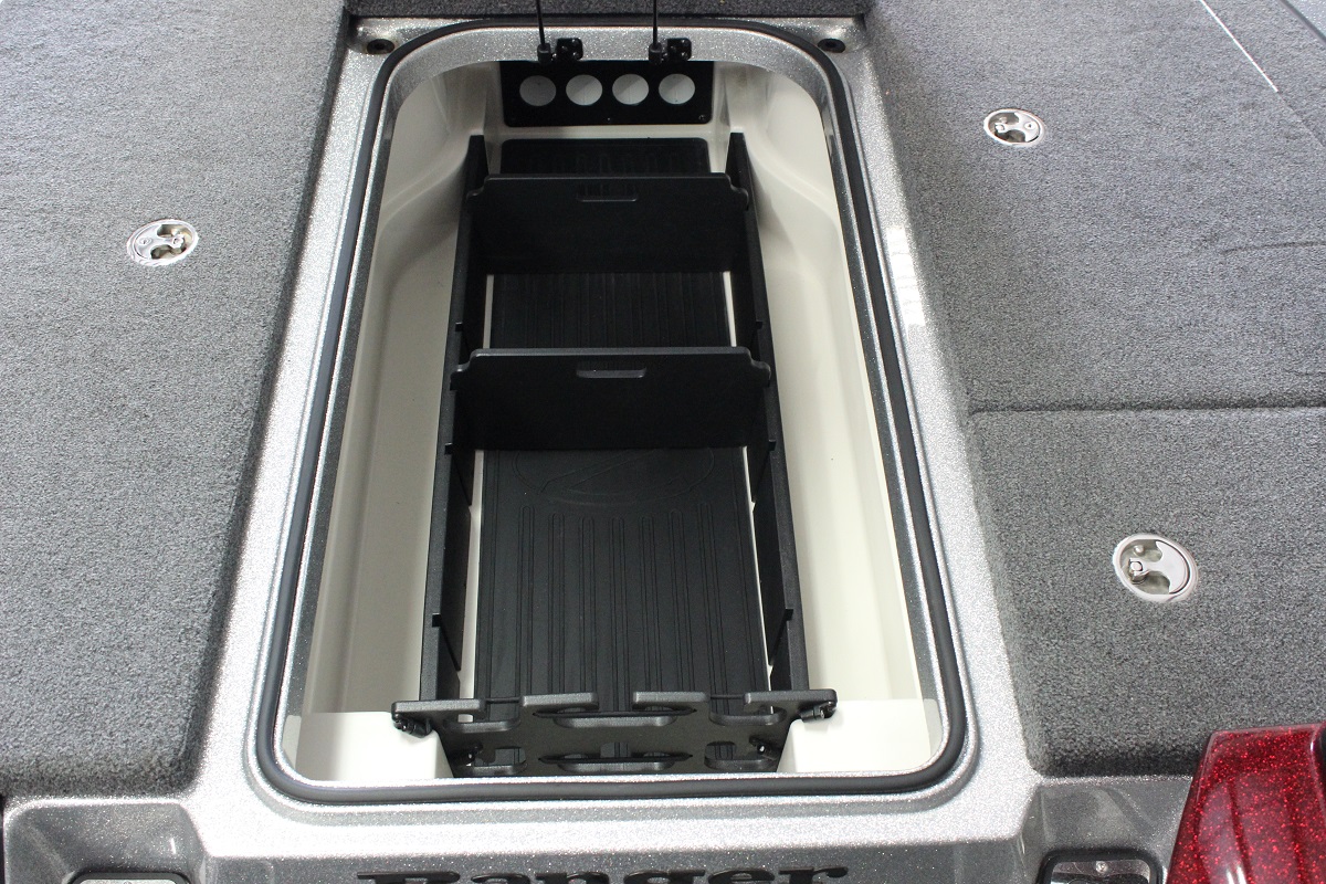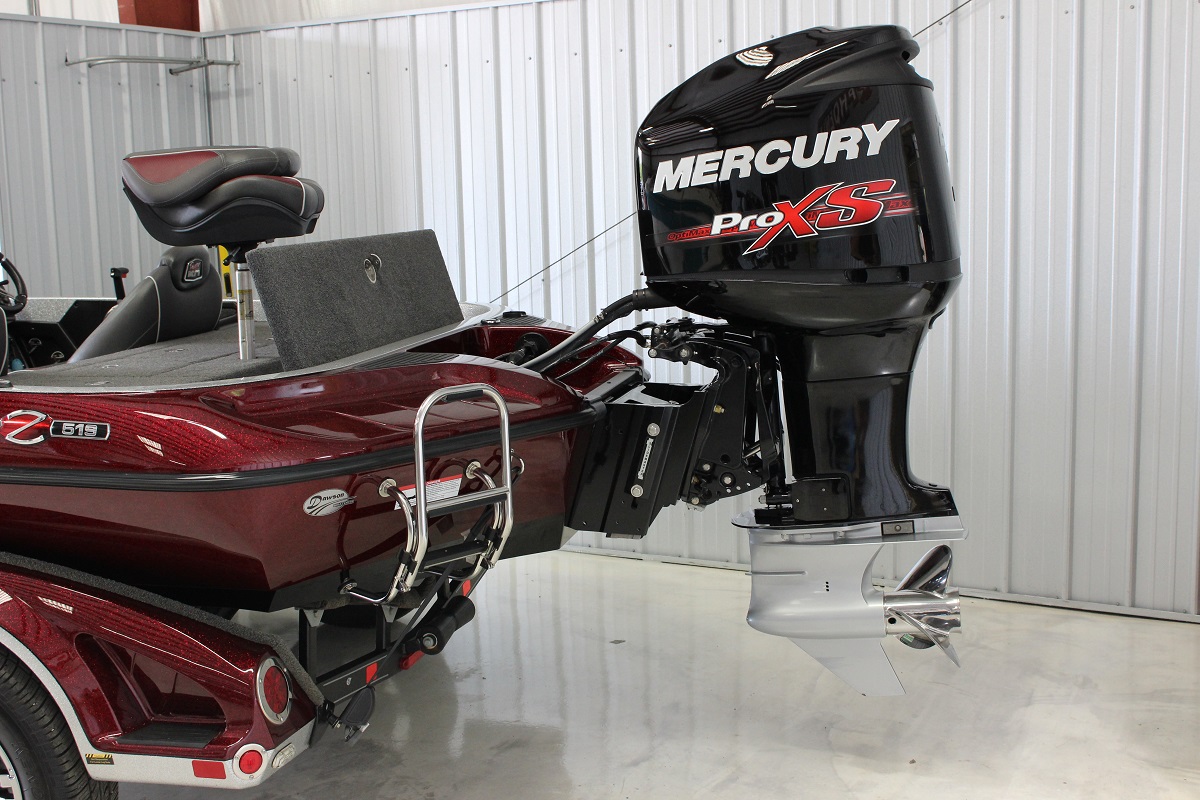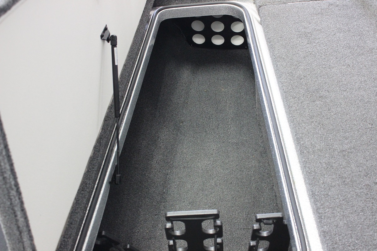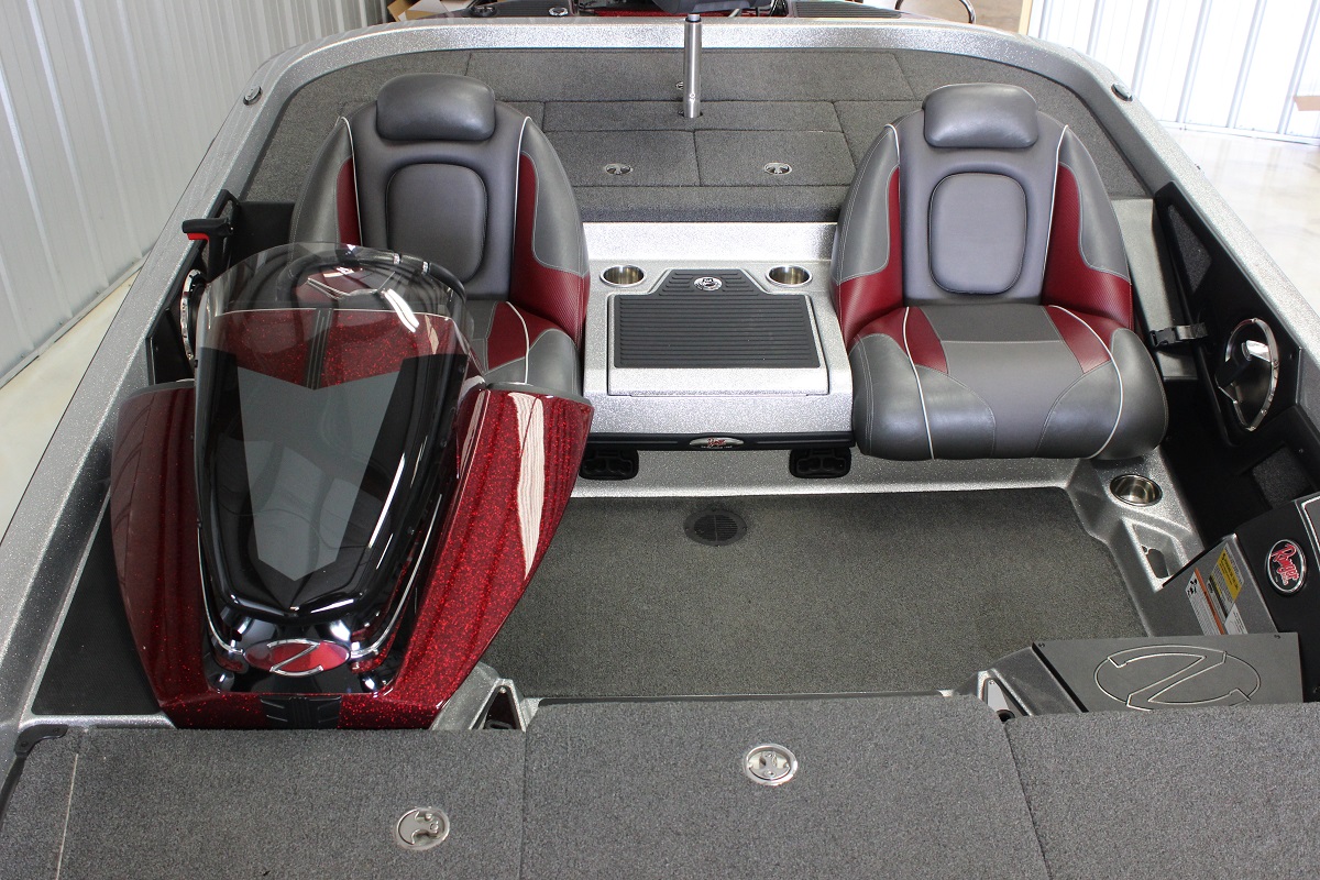 Hand-crafted for tournament-level performance, the Z519 is built to take all comers. Measuring 19′ 6″ in length, the Z519 is rated for up to 225 horepower. Upfront, the port and center boxes accommodate rods up to 8′ in length, while the starboard side houses a large storage box and gel-coat lined, insulated cooler. The Z519 cockpit features high performance bucket seats and an offset console that included a flush-mounted Humminbird depthfinder, weather-resistant membrane-style switches and a host of gauges and instrumentation. This boat is immaculate